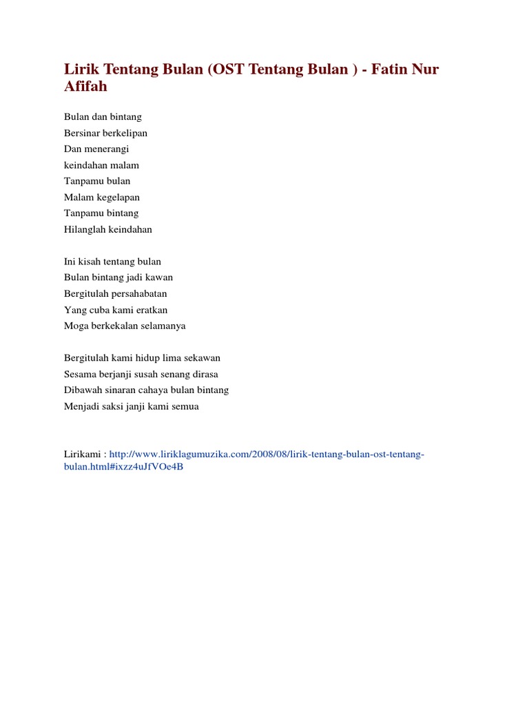 Di topi ni tao toba i. Bulan bintang jadi saksi Gubahan. Lirik Lagu Bulan Sabit - The Rain.
